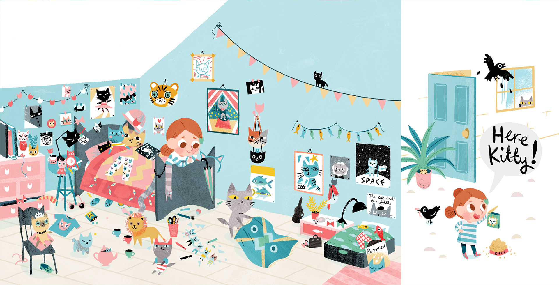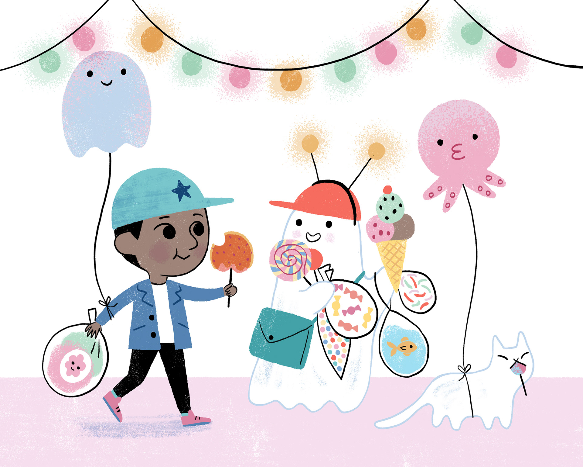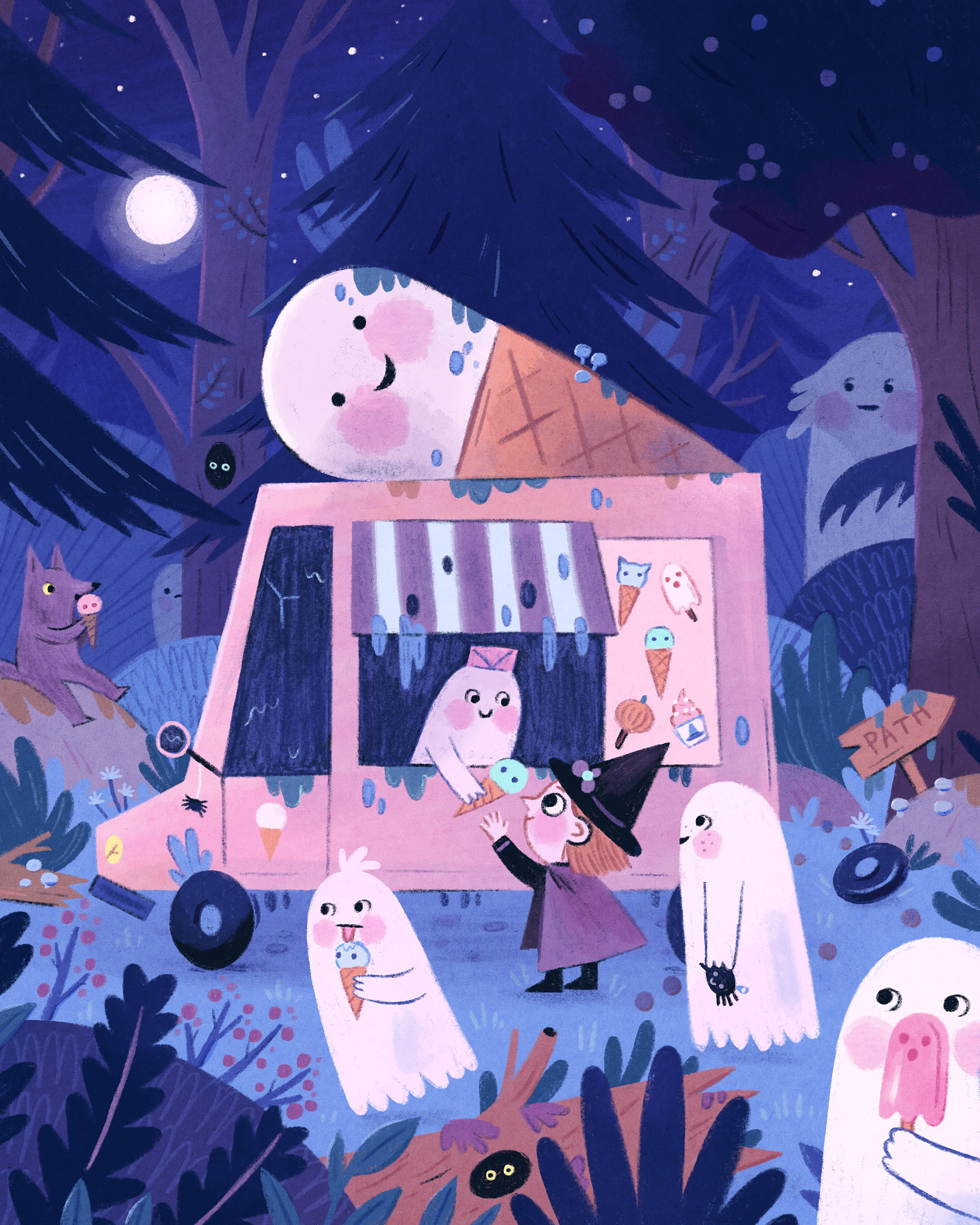 Ella Bailey is a freelance illustrator currently living in Devon, in the UK. Her work can mostly be found in children’s picture books. Ella works mainly digitally, likes to incorporate lots of texture in her artwork and enjoys using limited yet lively colour palettes. Some of her favourite things to draw include children, animals and ghosts.