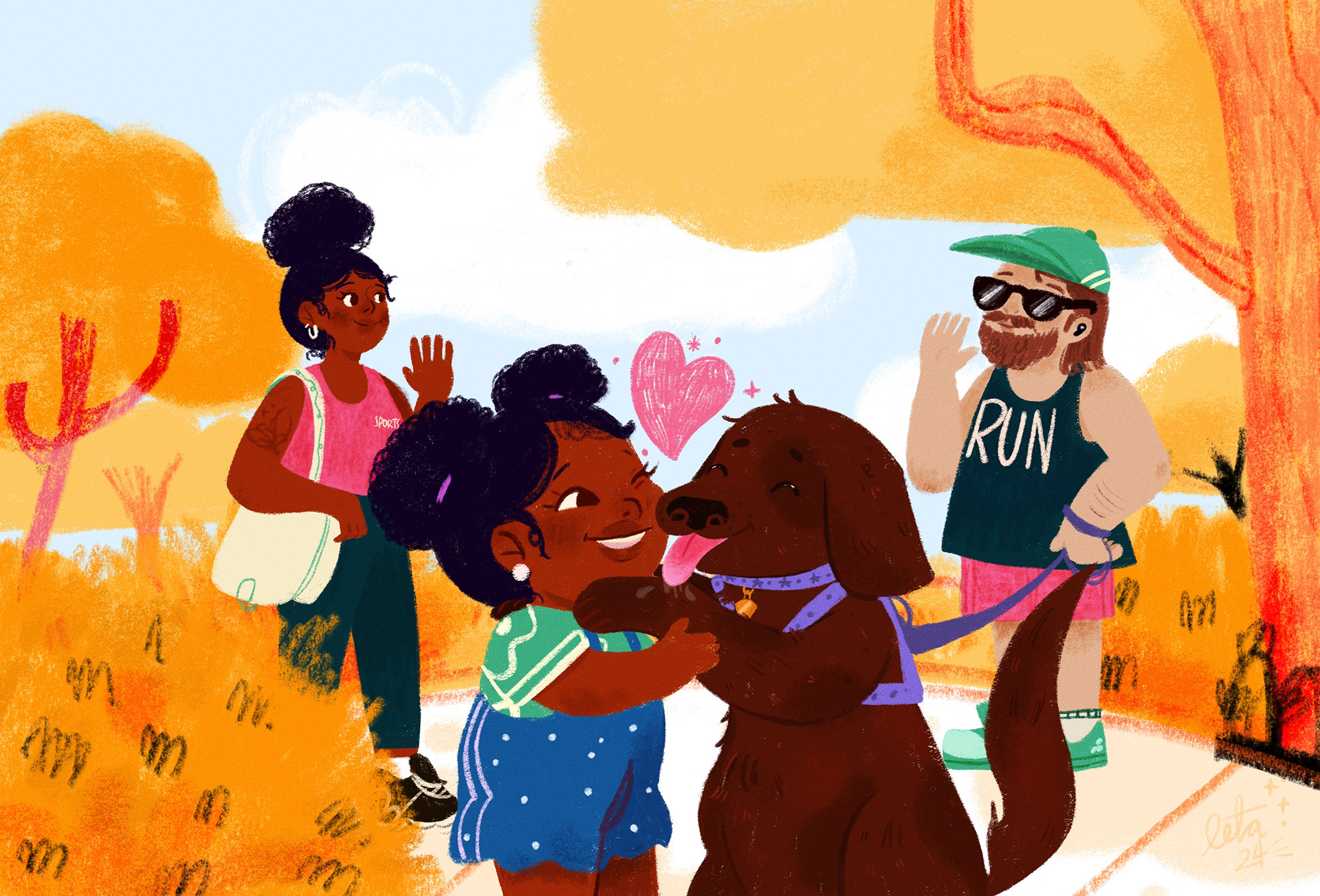 Letícia's artwork focuses on drawing black characters but refusing stereotypes of black people – making cute, colorful and fun characters. When not drawing you will surely find Letícia either playing Animal Crossing, watching Twitch streams, making some vegan recipes or playing with her dogs, Soshi and Pimenta.