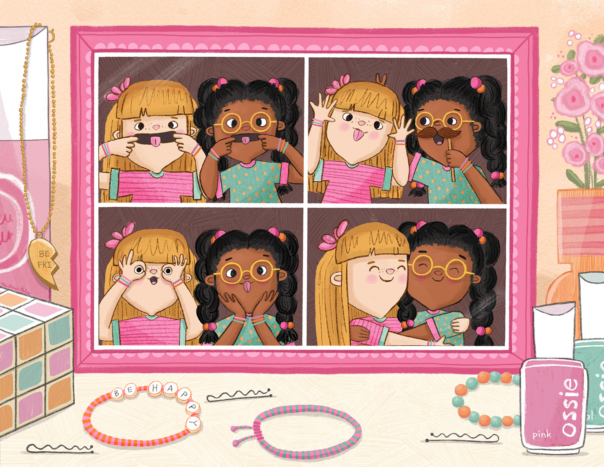 MacKenzie has completed three full marathons (slowly), fostered about twelve cats (not at the same time), and has two co-dependent cats named Booger and Abby. She has drawn her whole life, and flunked a math test in the third grade because she turned the test over and used the entire time to draw characters and faces out of numbers. She loves including small, interesting details in her work, and uses bold colors, patterns, and textures.