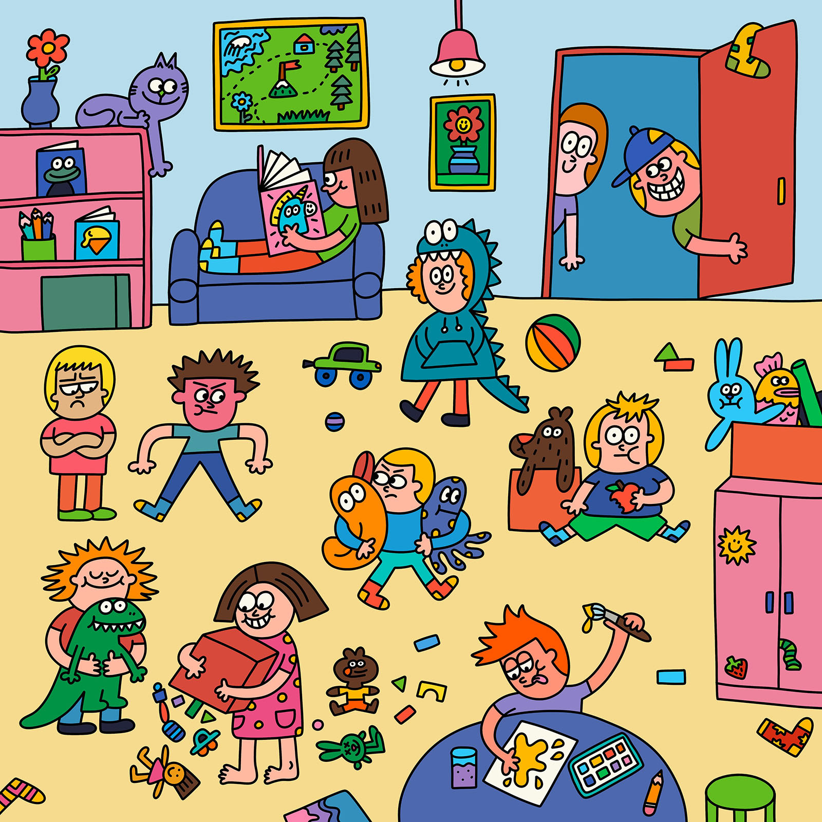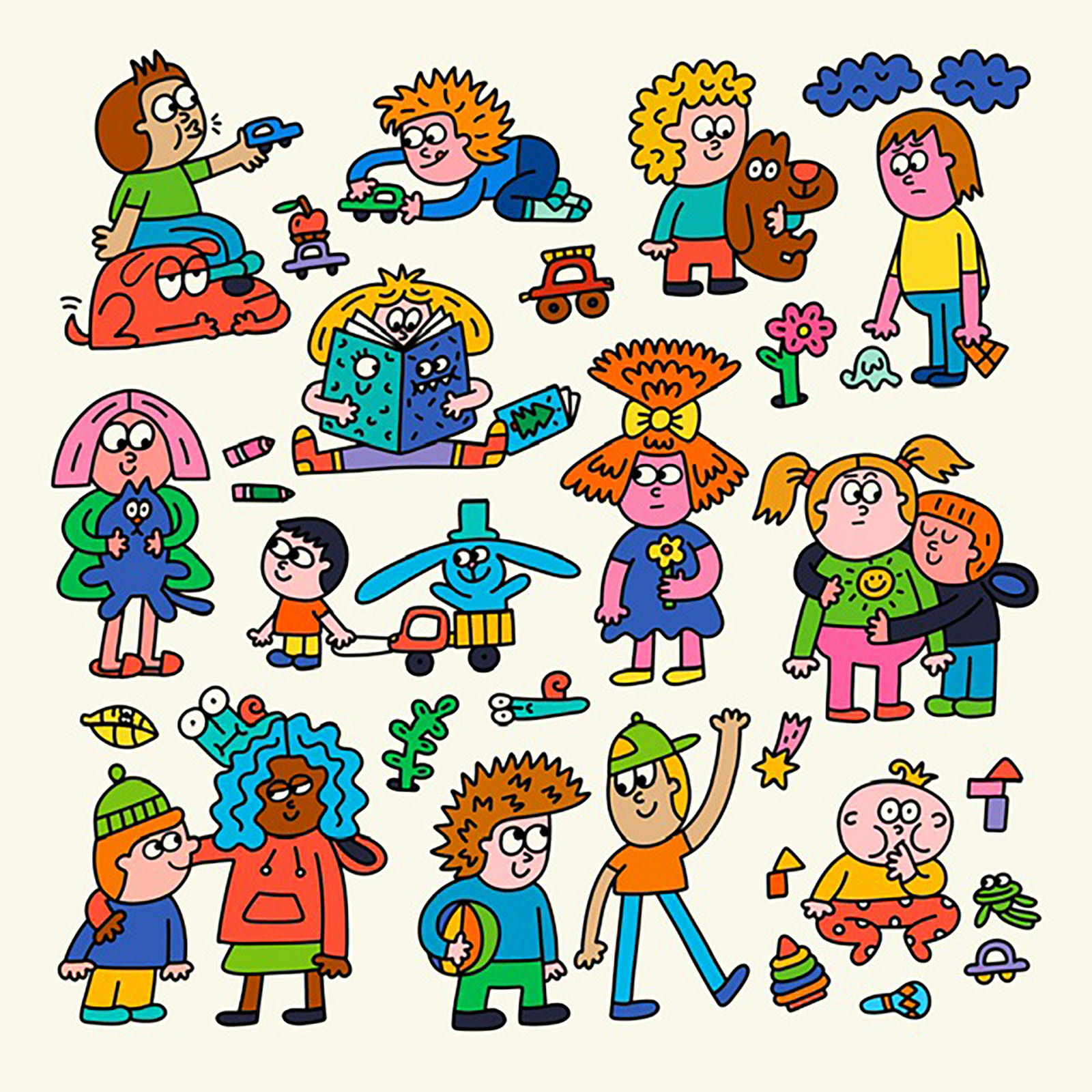 When Nina was a child, she believed that her drawings could come to life, so she drew kind and cheerful characters who would be fun to meet. Now, she has three kids who inspire her creativity. Thanks to them, she can draw super fast (and often her characters look like her kind and cheerful kids)!